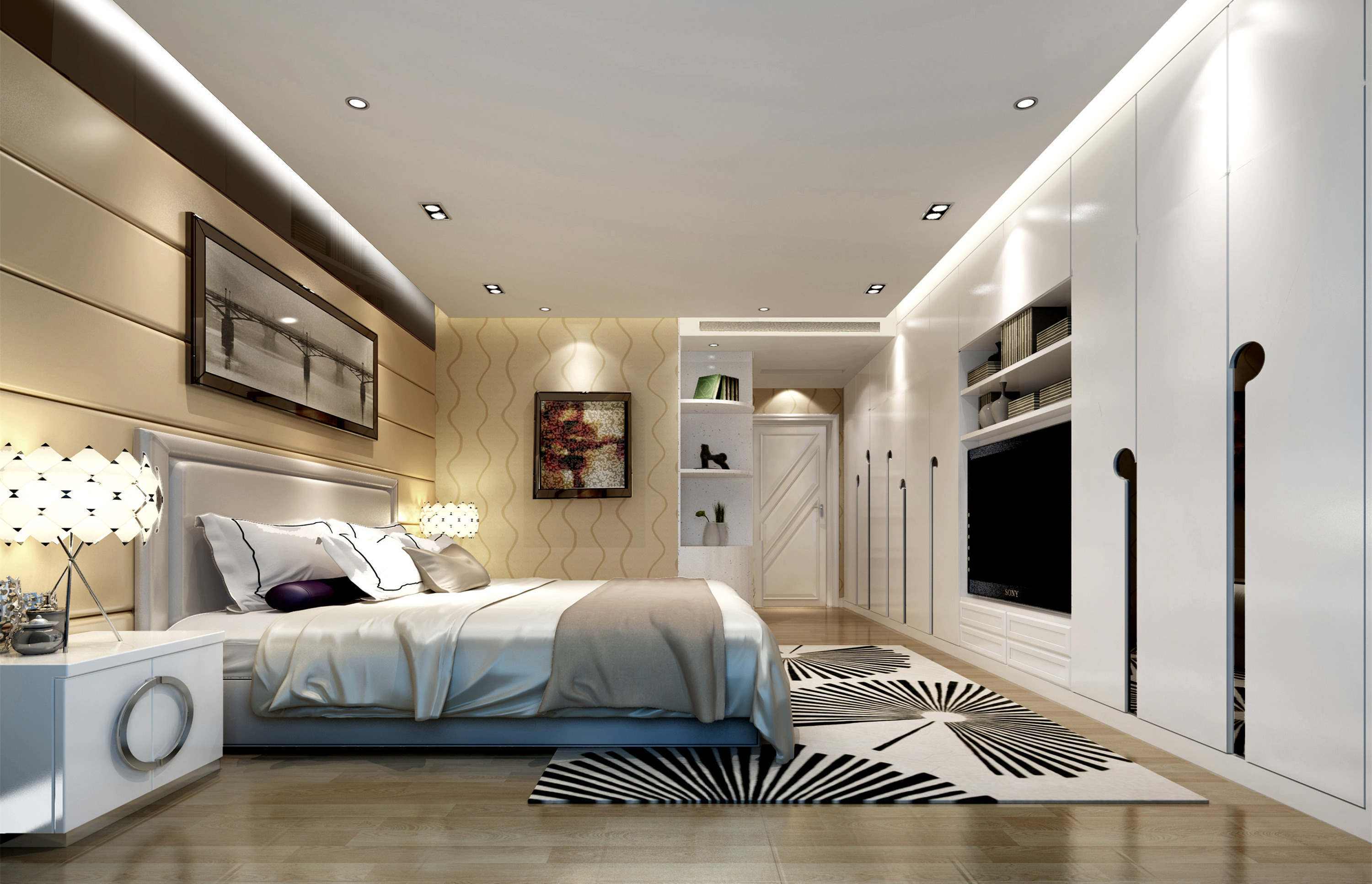 卧室是比较私密的地方,也是睡眠休息的区域,在装修时一定要讲究温馨舒适,不要只顾着追求时尚感等。墙纸的颜色选择暖色系的,给人很放松温馨的感觉;选择多功能衣柜、定制衣柜或是嵌入式的衣柜,既节省空间又有很强的的收纳功能。即使室内空间比较大,但也要为了节省空间,以致腾出更多的空间,居住起来也很舒适。