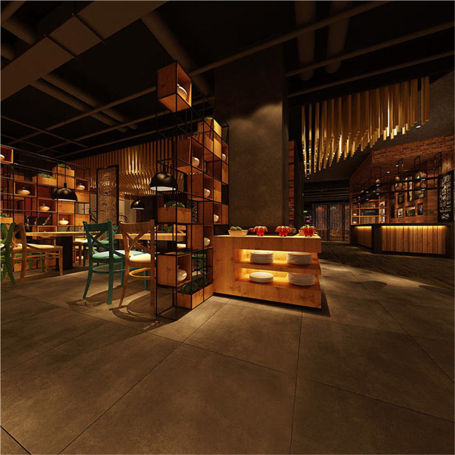 主题餐厅外立面设计:砖墙的装修展现了对过去的尊重,也给客人以时代的回忆,木材的自然气息,营造了优雅、宁静的氛围,柔和的灯光为客人提供一个温馨的用餐空间。