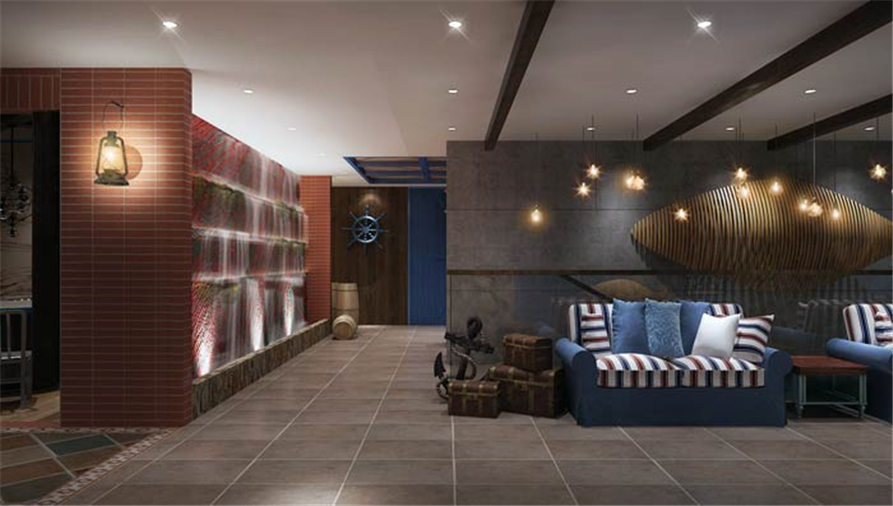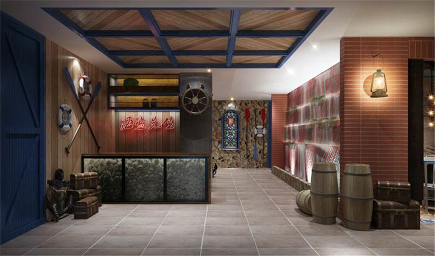 主题餐厅休息区设计:当下的社会,很多人都厌倦了钢筋水泥,这里设计师运用逼真、复古、唯美的航海时期风格,来缓解了人们对现代都市的厌倦。