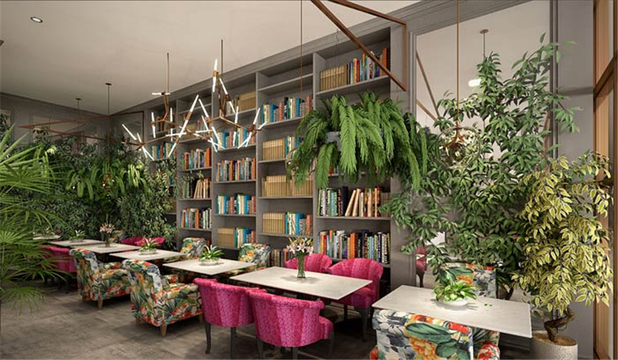 主题餐厅就餐区设计:此处位于空间的内部区域,外部以热带雨林风格为主,内部为幽静、清雅的风格为主,一静一动之间让整个空间更有魅力,满足不同需求的客户。