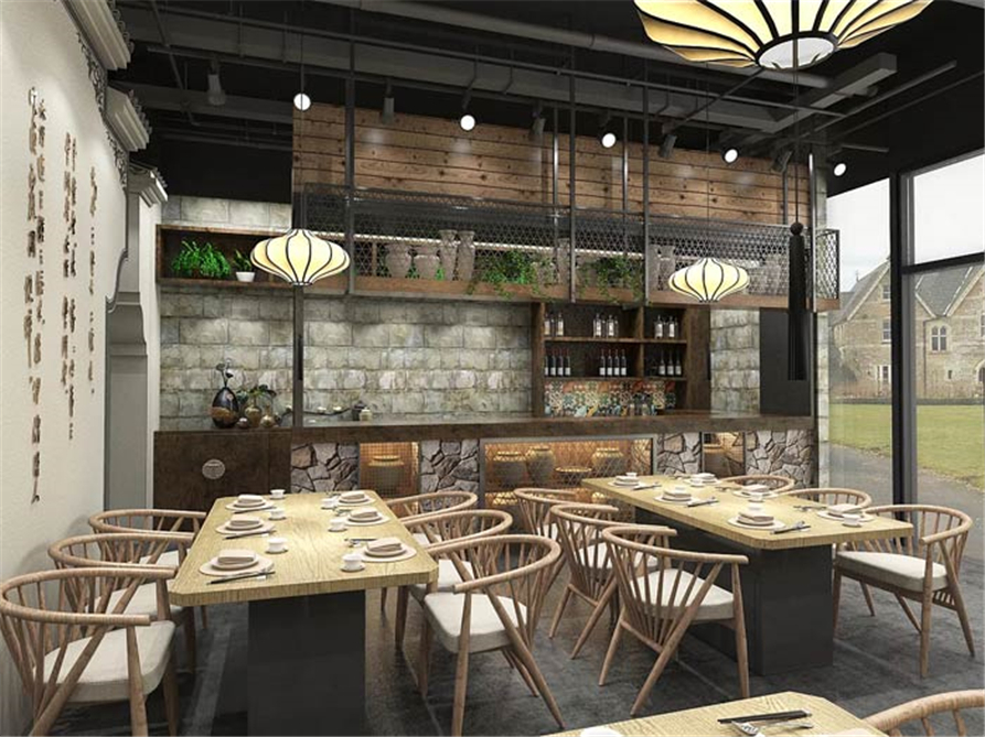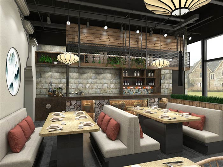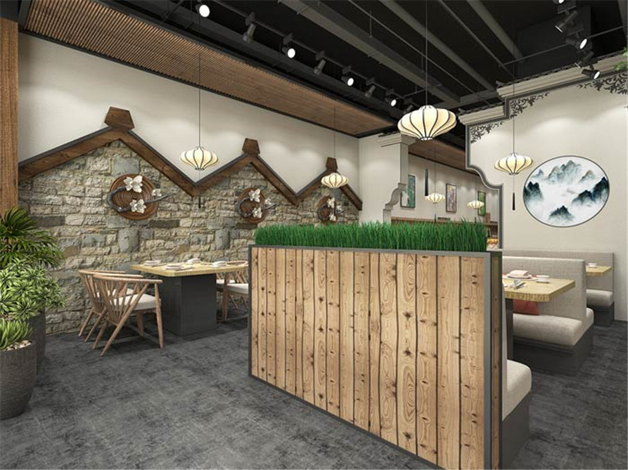 本次为小型中式餐厅装修设计方案,本次餐厅设计与以往的设计均不相同,因为此次餐厅位于景区之内,设计师除了要考虑餐厅本身的设计之外,还需要考虑与室外环境的结合,因为业主的要求就是,室内设计与室外景色的有效结合,两两结合既不是一加一那么简单。