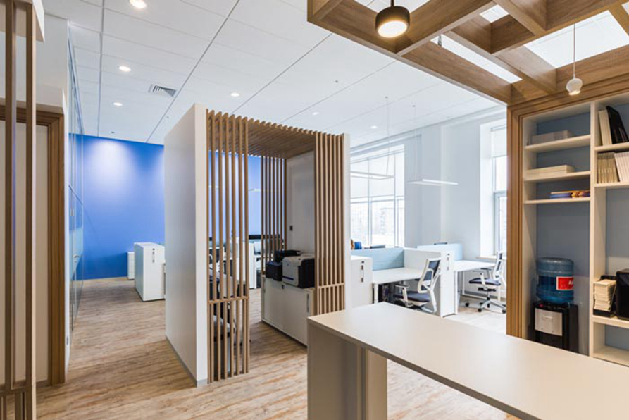本次为照明公司办公室装修设计项目,设计面积在130平方左右,由于办公室的面积有限,故此建立一个有效的、规划的功能空间就显得尤为重要,设计师的想法就是将办公室划分成不同的分区,但为了保证空间与空间之间的合理运用,故此在分区与分区之间设计师都不会将其完全封闭,而是采用相互协作进行化解。