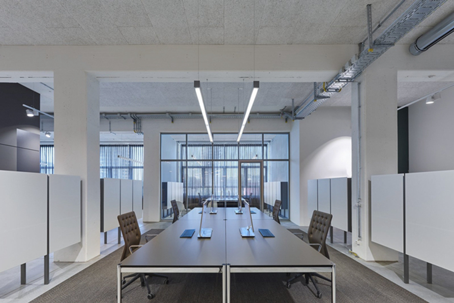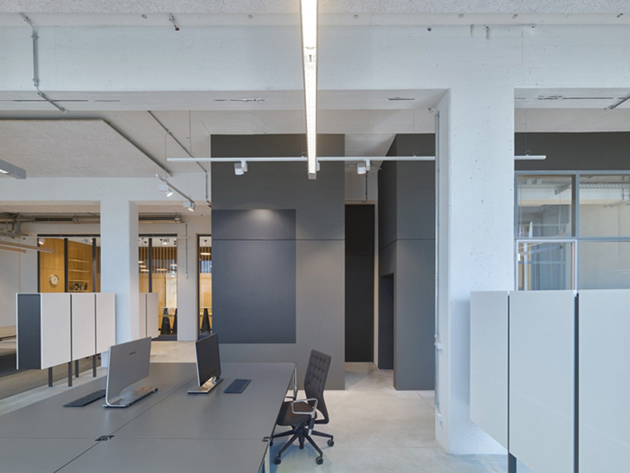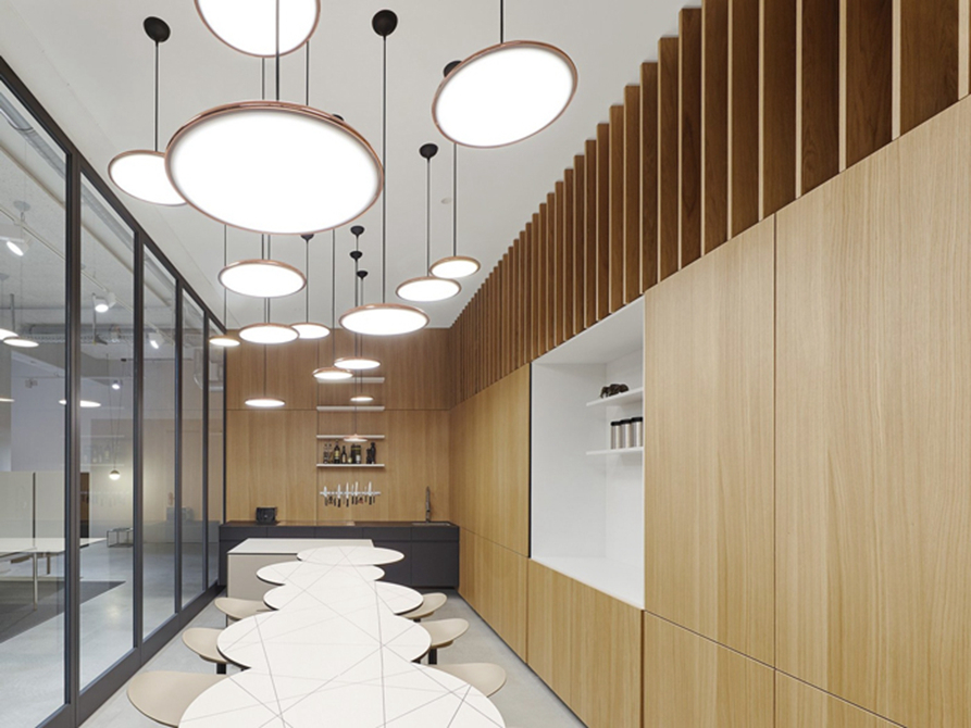 办公区域细节的设计:此处可以看出设计师在办公桌的选择上,可谓是煞费苦心,设计师的目的就是希望简单可以进行到底,设计师希望为员工打造一个舒适、轻松的办公场所,办公桌在员工平时的办公中意义十分重大,故此设计师希望员工可以自己去安排办公桌上的装饰,这可以最大程度上照顾到每一个人。