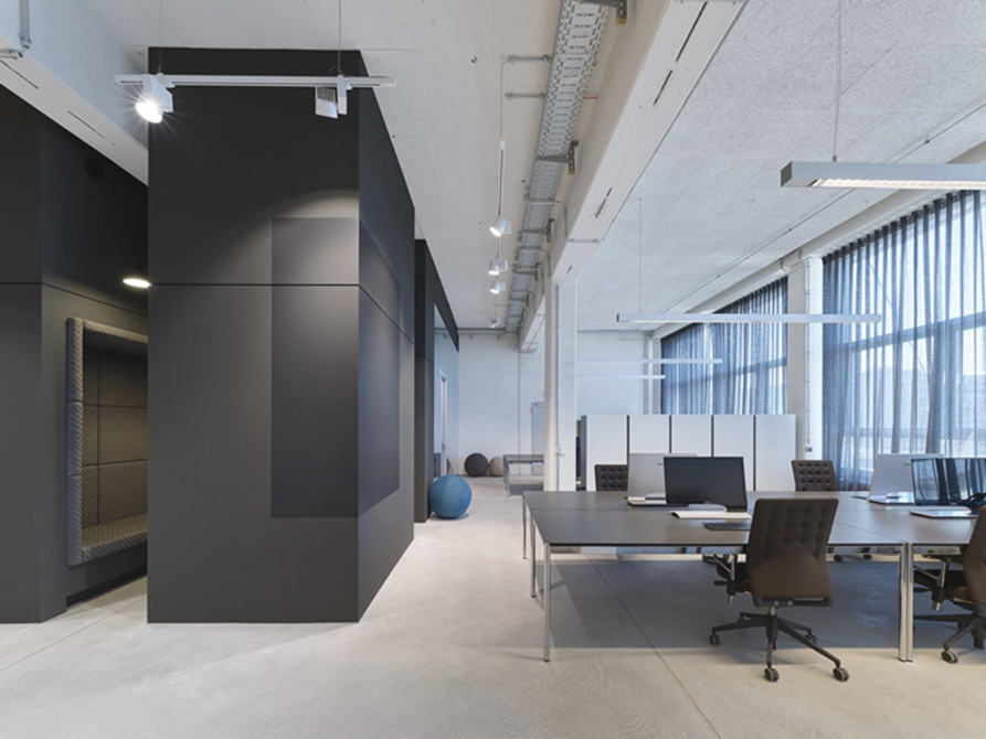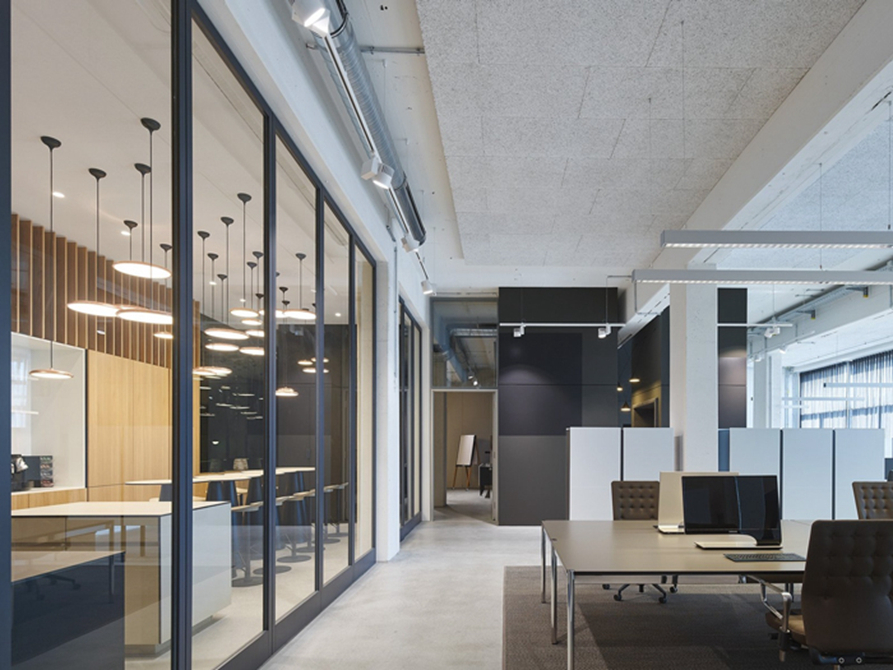 办公区域的设计:此次位于落地窗的旁边,属于办公空间的另一处办公区域,这也是应业主的需求,将不同部分安排在不同的区域,设计师在设计中,根据每一个部门的属性进行设计,让办公区域与部门之间的属性相互关联,在这样的情况下办公效率也能达到事半功倍。