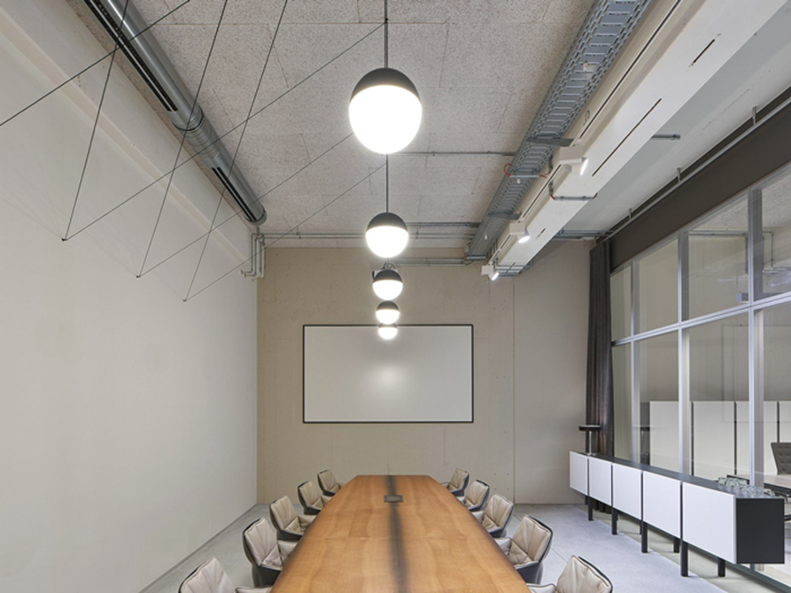 会议室的设计:虽然空间面积有限,但是在设计师看来,在会议室的设计上,一定不能小气,因为会议室本身的意义就十分特殊,设计师希望让每一个员工在这里,都可以感受到企业的良苦用心,在这里每一个人都为了企业的发展而献计献策。