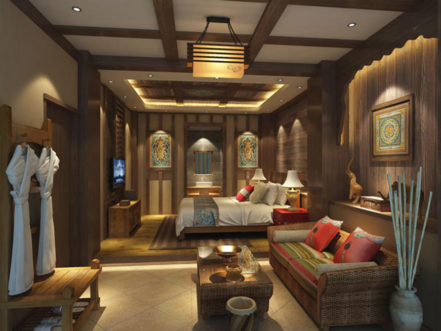 特色单人客房的设计:在此处设计师融入了藏式的装饰品,并在其中以藏式装饰为主,因为藏族受到宗教和民俗的影响,对墙面和构件细部的色彩运用和处理,有着各种不同的做法,但唯一不变的就是对人性的追求,在这里我们会感受到宗教的某种特色,在此间我们的心将得到一次净化。