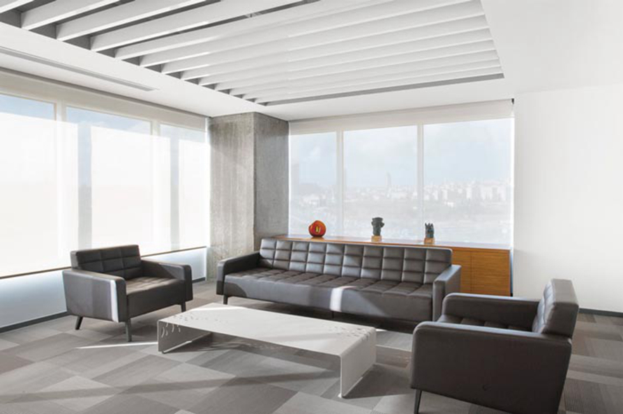 接待区域的设计:此处的配置十分简单,这也是设计师化繁为简之后取得的成功,设计师希望当客户进入空间的时候,感到的不是压力而是喜悦,进入空间首先看到的就是都市的美景,在阳光的照射下,是那么的迷人,让人的心也轻松不少,俯视美景冲散了身心的劳累。