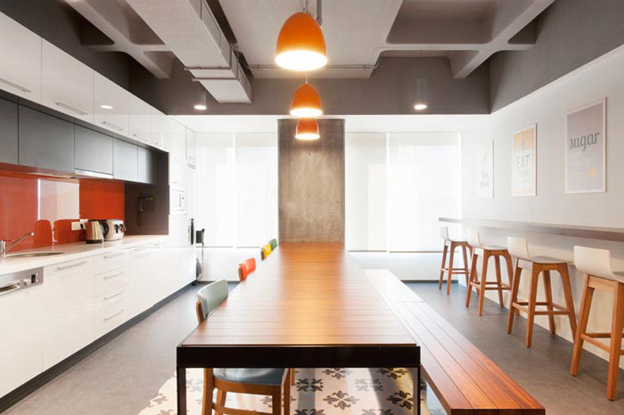 茶水间的设计:此次是独立与空间之外的存在,设计师希望为员工营造一个温暖的港湾,在设计师看来现如今对于企业来说,最关键的就是让员工如何释放压力,因为在压力的状况下,人的精神是高度压抑的,在这样的情况下人也会越来越麻木,故此设计师希望让员工在这里对自己做一次全面的梳理。