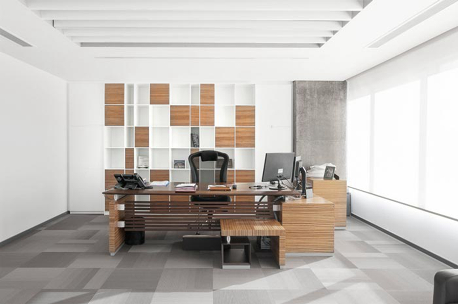 总经理办公室的设计:此次的感觉是大气、明亮、简约,简约的设计手法中和了大气与明亮,让此三种元素可以并存与空间之中,设计师认为总经理是引导企业走向的人,若是没有一个冷静的头脑必然是不行的,故此设计师希望为总经理营造一个具有辅助型的办公空间。