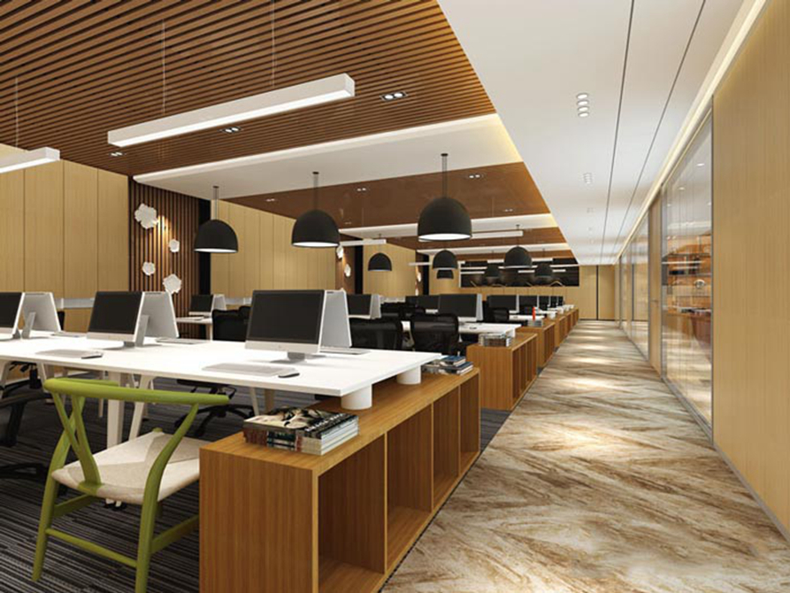 办公区域的设计:开放式的办公空间是设计的主旋律,这是因为客户希望打造一个属于企业的大家庭,客户希望员工在这个大家庭中相互扶持、相互成长,开放式的空间就是让大家更有责任心,让大家在这样的空间中,做到一人有难、八方来帮,同时也可以有效的规避每个人的言行,做到三思而行。