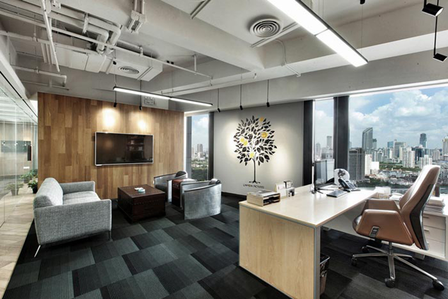 董事长办公室的设计:设计师在设计的时候,与董事长进行了深入的交流,通过交流了解到董事长喜欢安静与宁静,这也就是设计师将此处安置在空间深处的原因,同时此处的视野也极好,让董事长在办公之余可以俯视与欣赏到整个外部美景,以此在不知不觉中提升董事长本人的视野。