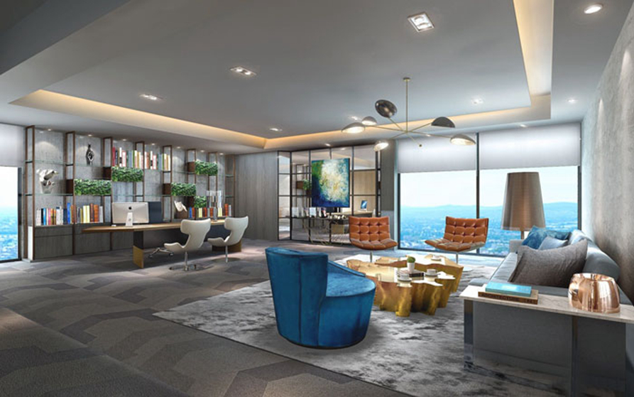董事长办公室设计:设计师在设计的时候,主要就是希望将室外的景色引入室内,真正做到室内与室外的交融融合,这样的空间风变得清新、阳光变的明媚,仿佛时时刻刻在旅行,同时使空间具有吸引的属性,真是让人羡慕不已。