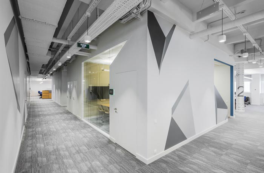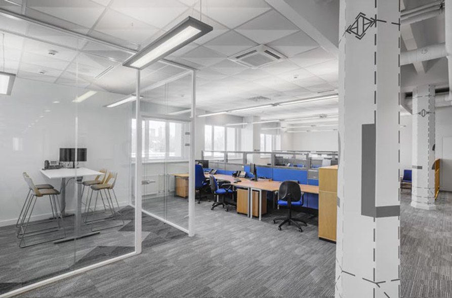 办公区域的设计:此处是其中一个部门的办公场地,设计师在办公工位的设计中,将每一步部门按照不同的属性分割在空间的每一个角落,这样做好的好处就是保证为每一个员工都提供优质的办公工位,不会出现人员扎堆的想象发生,即保证了空间的通畅也为每一个部门都保留了自己的空间。