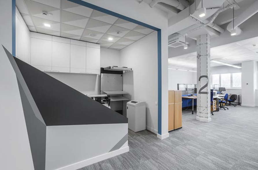 工具间的设计:在工具间内主要有打印机、储藏柜等,相邻的就是办公工位,这样设计的好处就是将相近的部门安置在一起,即不影响整个空间的布局,也加快了办公的效率,对每一个空间也能够做到合理的运用,让办公更加的人性化。