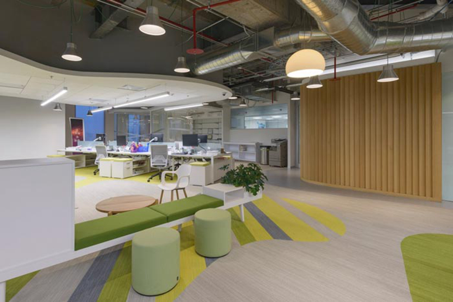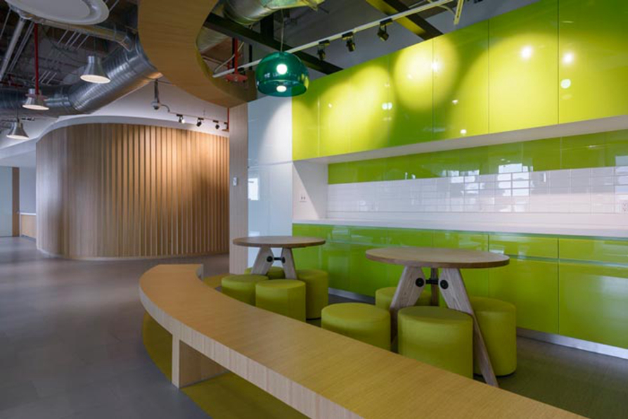 办公区域的设计:设计师在设计中为了将劳逸结合变为现实,故此在设计的时候将办公、休息都加以具象,目的就是希望让员工在这样的空间之中,将劳逸结合转入自己的工作之中,休息是为了更好的开始,这是设计师对于休息的感悟,也能充分展现企业对于员工的关爱。