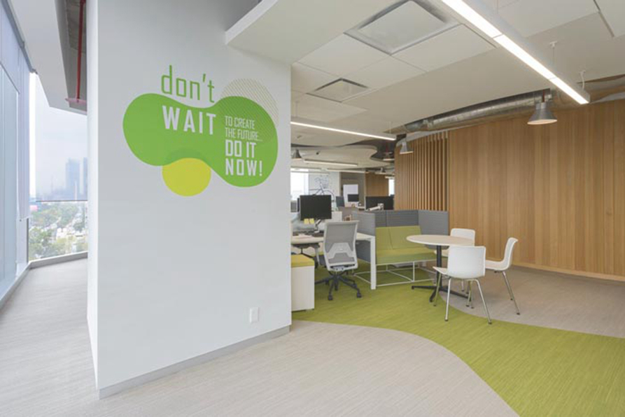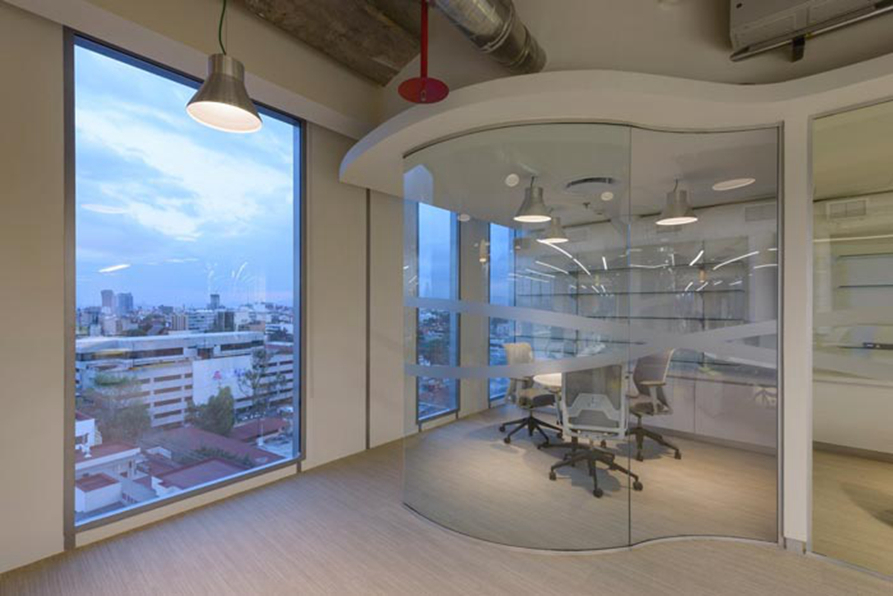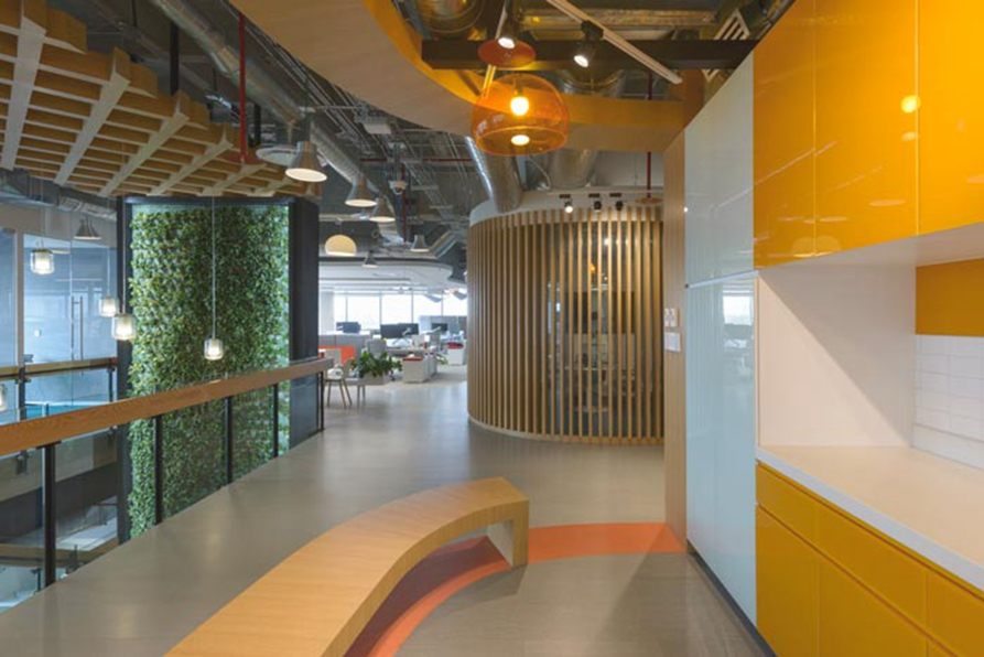 办公区域的设计:在此处我们首先看到的是城市美丽的景色,其次看到的是辅助性空间的设计,设计师在设计中会了解每一个部门的工作,同时对工作进行分类,目的就是根据工作的不同,为其设计一套便捷的办公格局,让办公更加便捷,让人性化进入空间的方方面面。