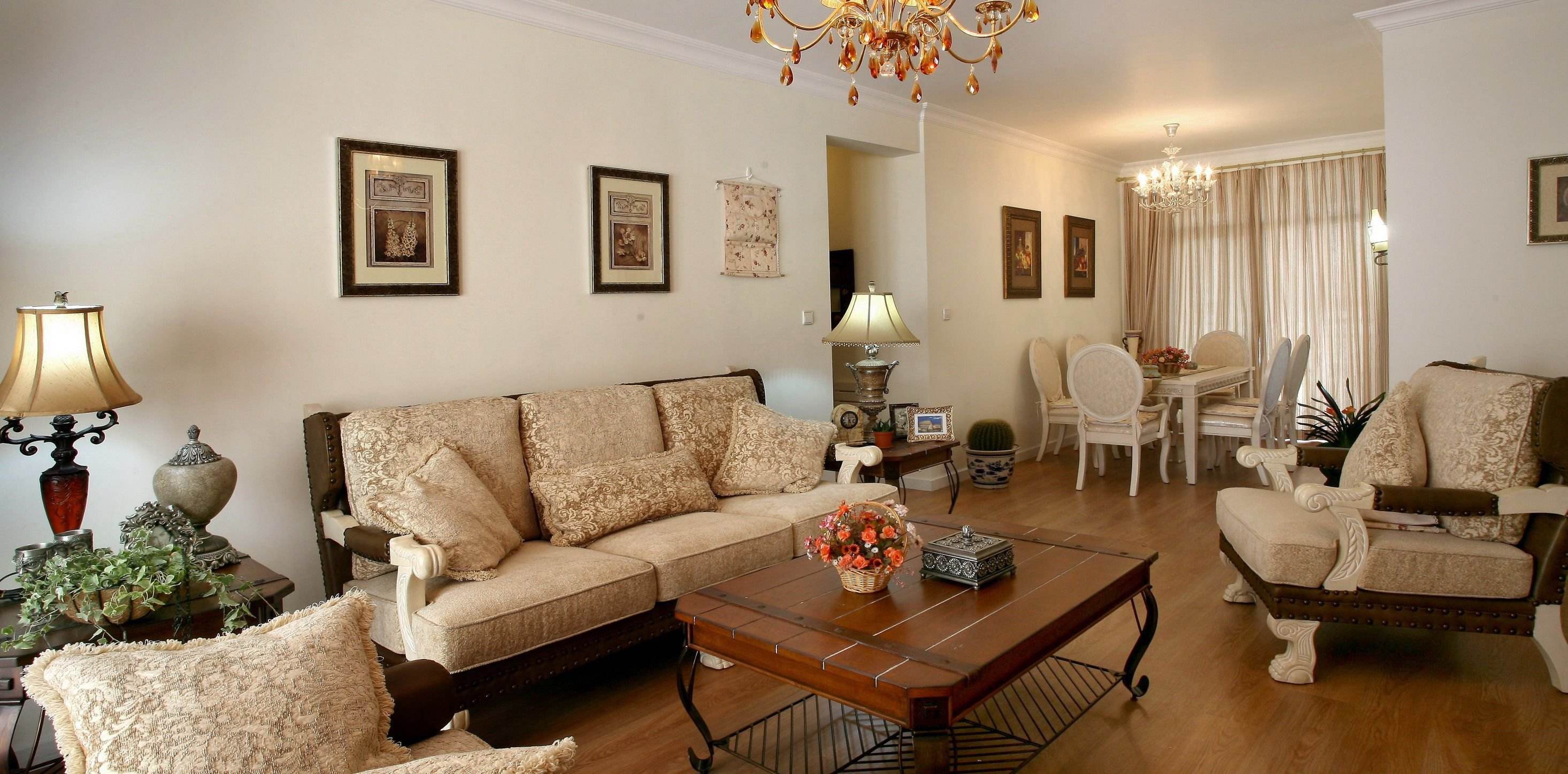 客厅以白色调为基础,墙面上是使用经典也是最实用的美式风格护墙板,电视背景墙把美式较为经典的柜子和背景相结合,构造出不同以往的风采,柜子即实用能作为一道风格,正是一举两得画龙点睛之笔。窗帘和抱枕的颜色正是田园风格所强调的原始的态度,整体把美式作为大的背景然后把田园体现在软包装饰搭配上,这样看似的分离的两个风格,但实际的是融合的恰到好处的完美设计。花,是美式田园风格中极具代表性的元素,从床上用品到沙发、靠垫等各种纺织用品,但凡带有大型或大面积花卉图案的都很有可能被美国家庭用来装饰“乡村”系列的家。它们独有清新的乡间气息,只需看上一眼,自由奔放、温暖舒适感受就会跃然心头。
