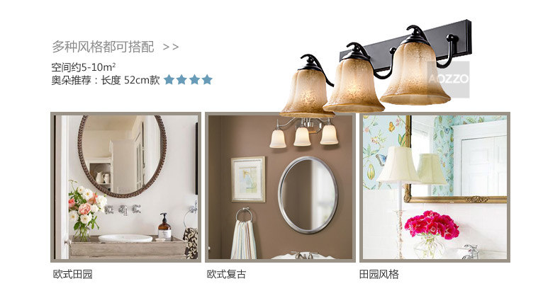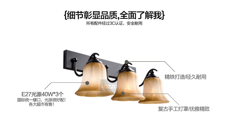 【奥朵】欧式复古铁艺镜前灯卫生间 浴室 美式壁灯 灯具 30007OR