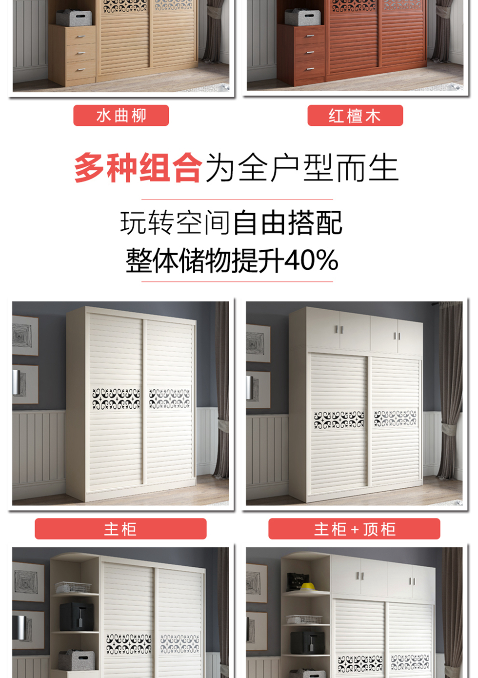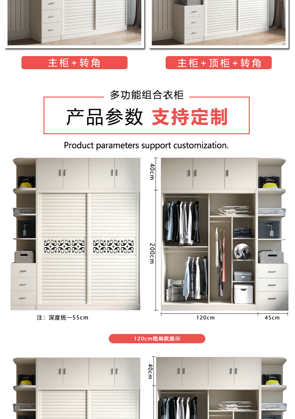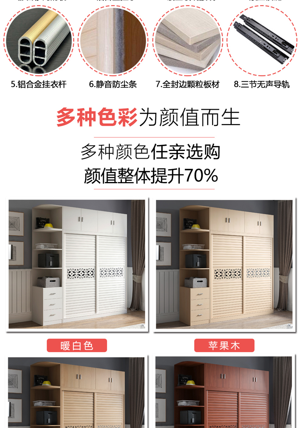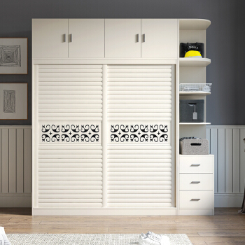 绿装我家衣柜 推拉门移门百叶门大衣柜衣橱简约简约现代板式衣柜整体两门 暖白色 200长衣柜+顶柜+转角柜