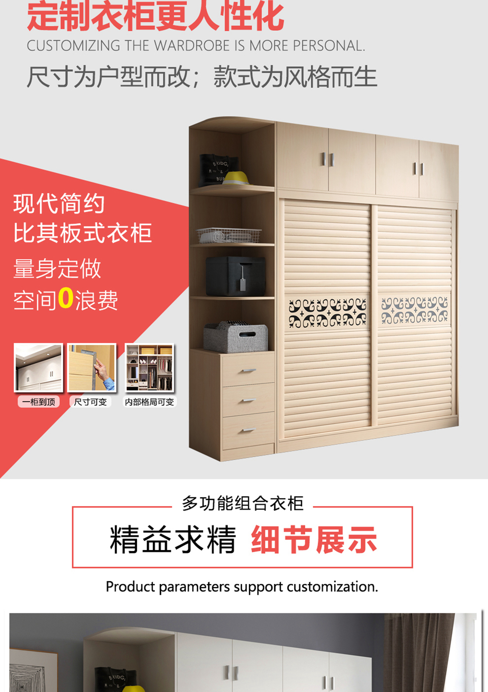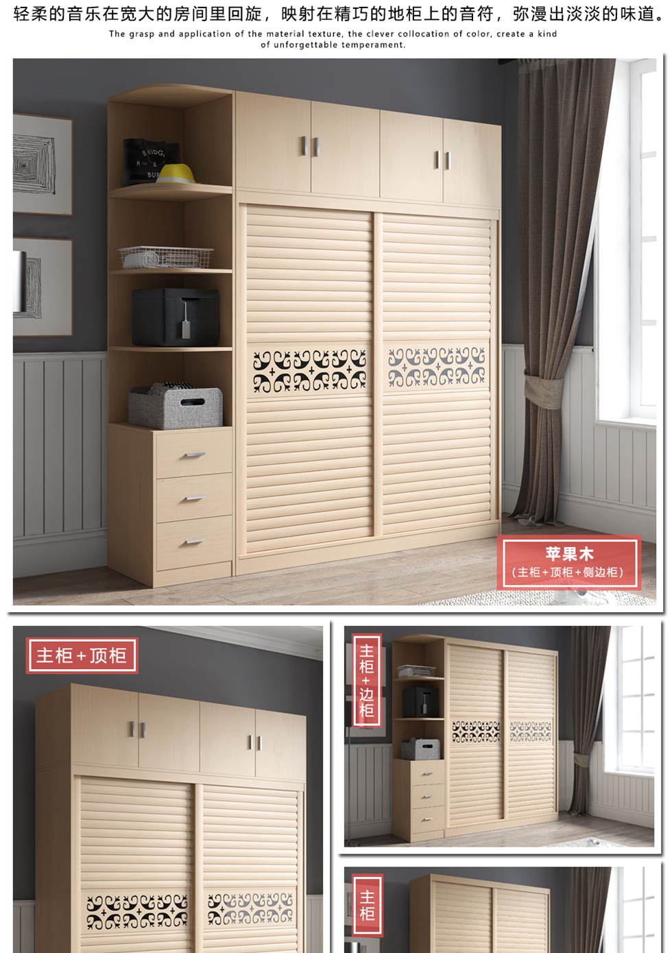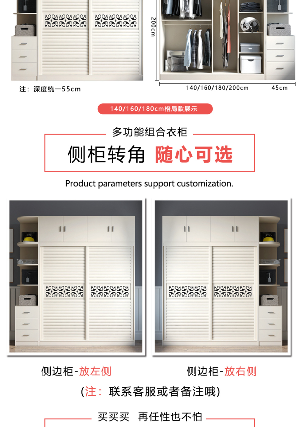 绿装我家衣柜 推拉门移门百叶门大衣柜衣橱简约简约现代板式衣柜整体两门 暖白色 200长衣柜+顶柜+转角柜