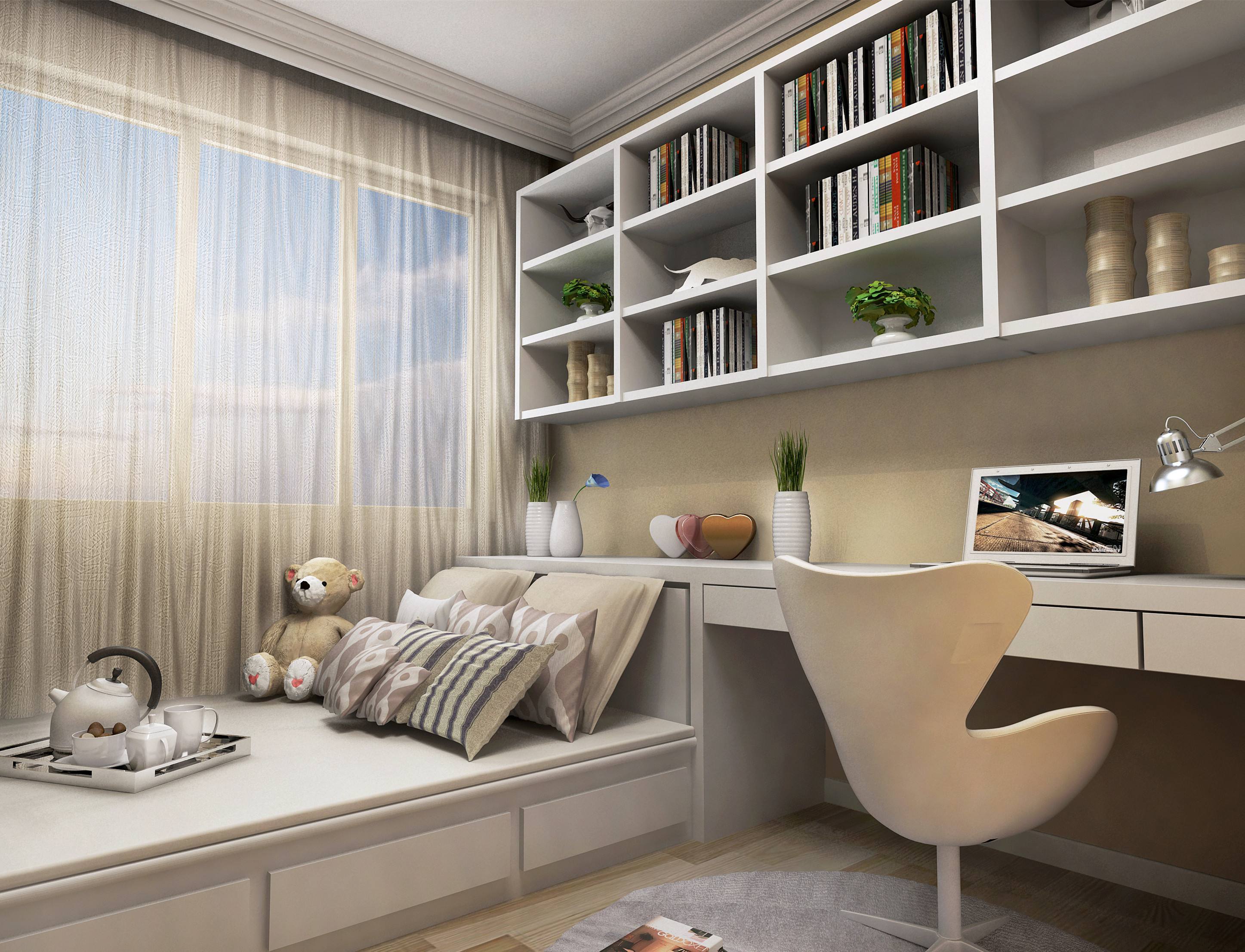 4、小书房的家庭,我们适合选择白色的休闲家具,因为白色的休闲家具给家里面一种干净整洁的效果,可以很随意的进行摆放,这样书房里面显得比较有气息,而且也会显得家里面大一些。