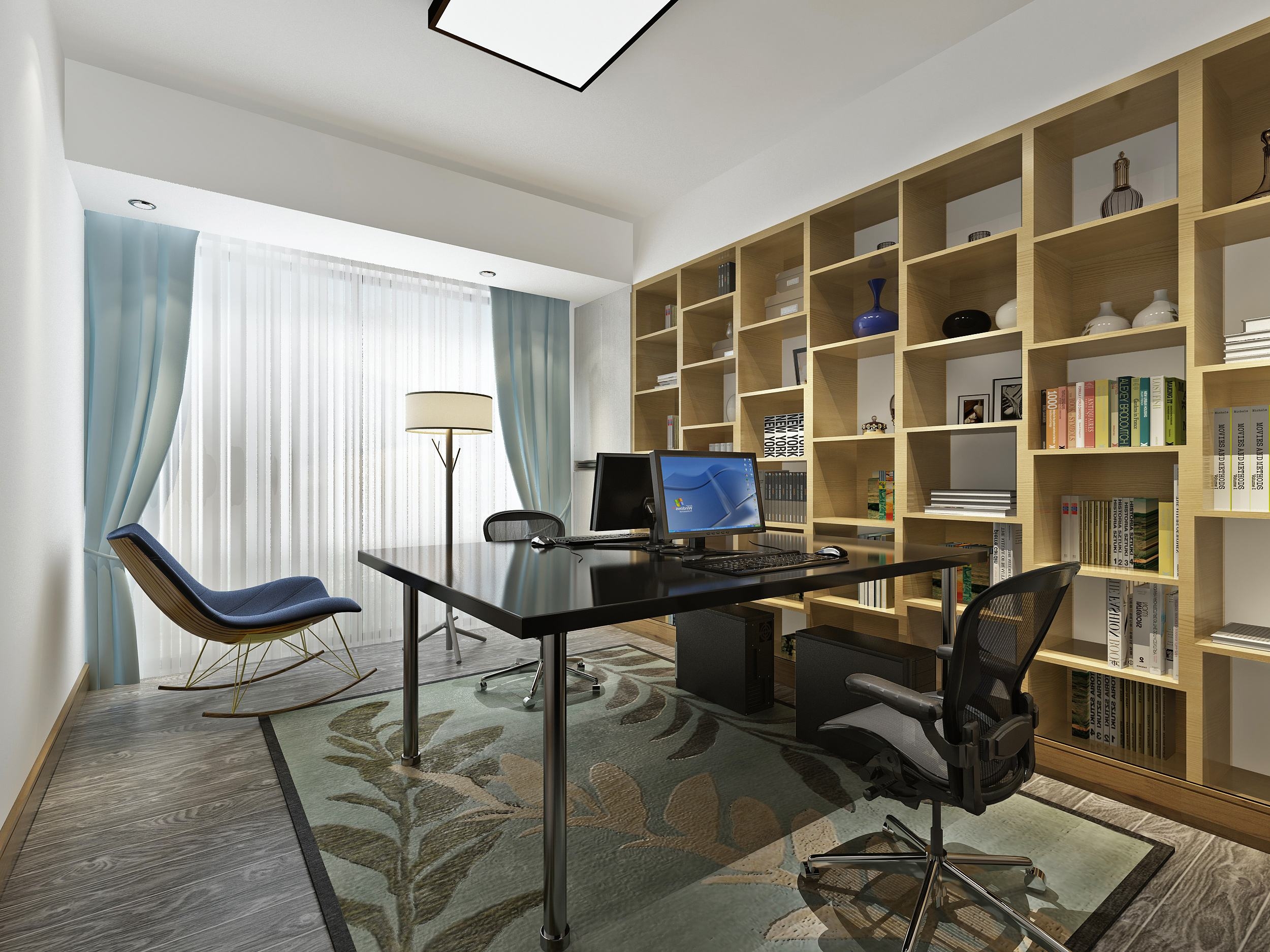 2、书房这个空间的目的是让人安心静心阅读、能够有较高的工作效率和学习效率。因此这个空间的装饰物不宜太多,同时也不宜太花哨。