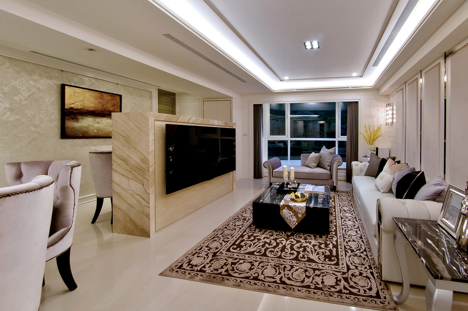 地面主要角色不光是石料,还可以用地毯。地毯的舒适脚感和典雅的独特质地,与西式家具的搭配相得益彰。但在图案以及色彩的选择上,要相对淡雅一点,与风格主色调相契合,过于花哨的地面也许会与欧式古典的宁静和谐相冲突。在地毯材质的选择上,最好选用天然纤维。