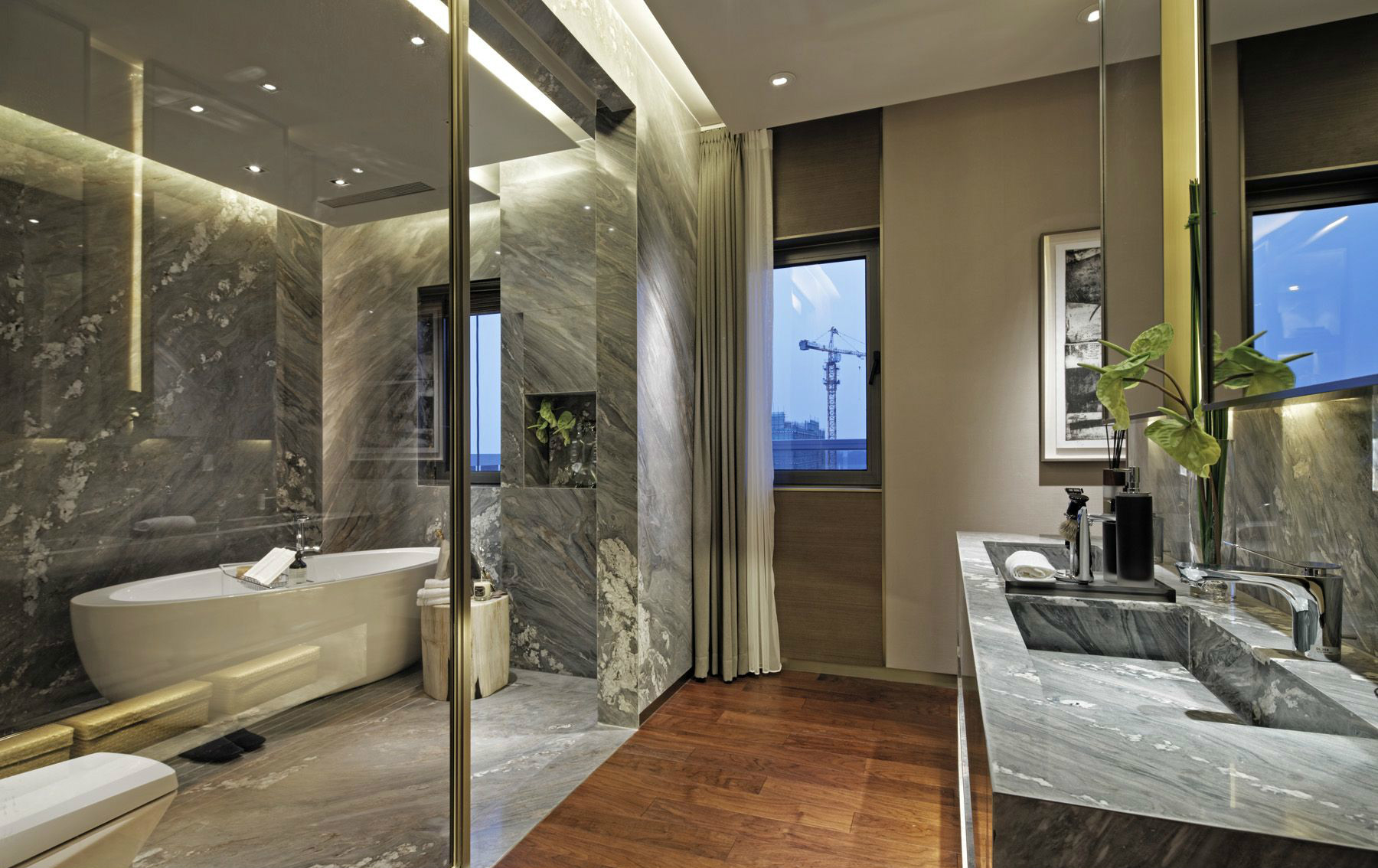 4、卫浴间最好有窗户,以利通风;如果没有窗,尤其要注意门的细节。为防止卫浴间的水向外溢,门界要稍高于卫浴间内侧;卫浴间的门与地面的空隙要留得大一点,以利于回风;如果是推拉门,还要在推拉门与卫浴地砖之间做一层防水。