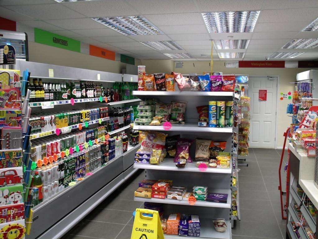 3、欧式风格适合选用的货架颜色比较广泛,沙纹灰,亚光白,高光白均可,标价条的颜色一般以为蓝色,整体风格完美的与便利店风格相匹配,给人一种清新、简洁的效果,从而强烈的吸引便利店客户购买更多的商品。