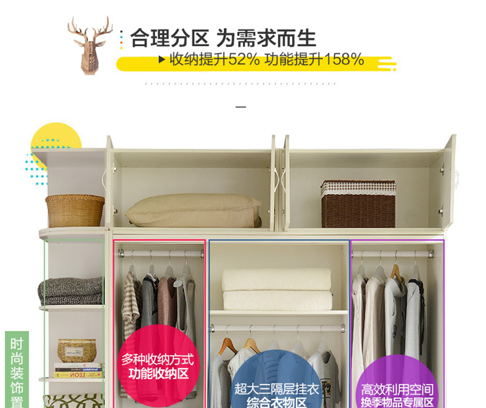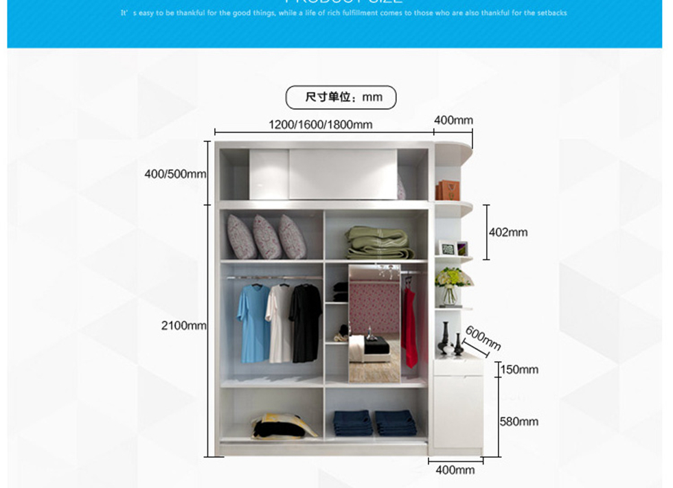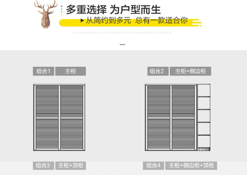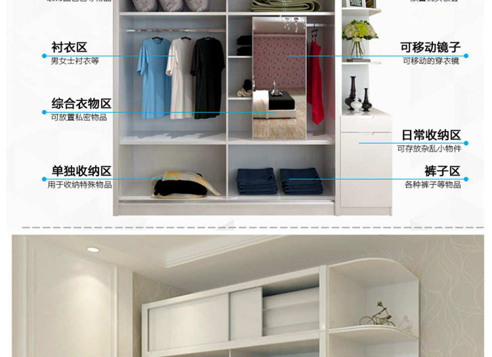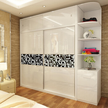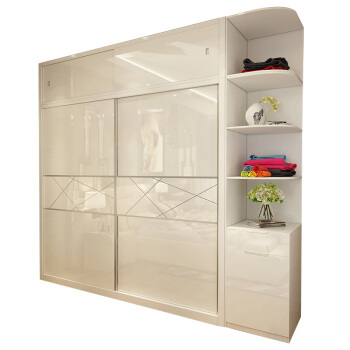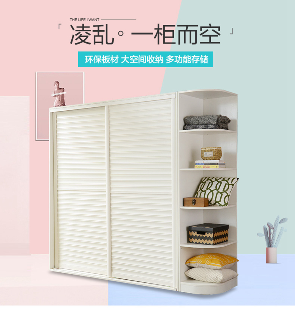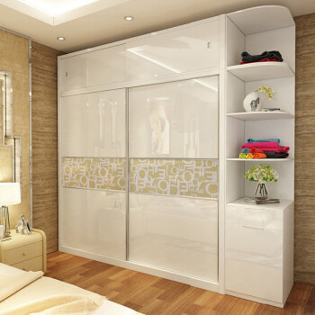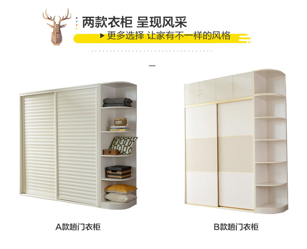 绿装我家衣柜 推拉门衣柜卧室家具现代简约板式衣柜 A款趟门衣柜+顶柜+边柜(左侧) 1.8米